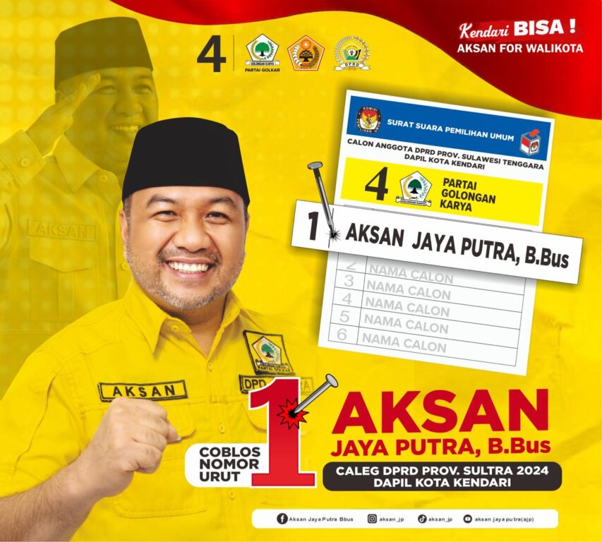 HaluoleoNews.ID, KENDARI- Calon Anggota Dewan Perwakilan Rakyat Daerah (DPRD) Provinsi Sulawesi Tenggara (Sultra) Daerah Pemilihan (Dapil) Kota Kendari, nomor urut I dari Partai Golkar periode 2024-2029 Aksan Jaya Putra (AJP) menargetkan 30 ribu suara dalam pemilihan 14 Februari 2024.
