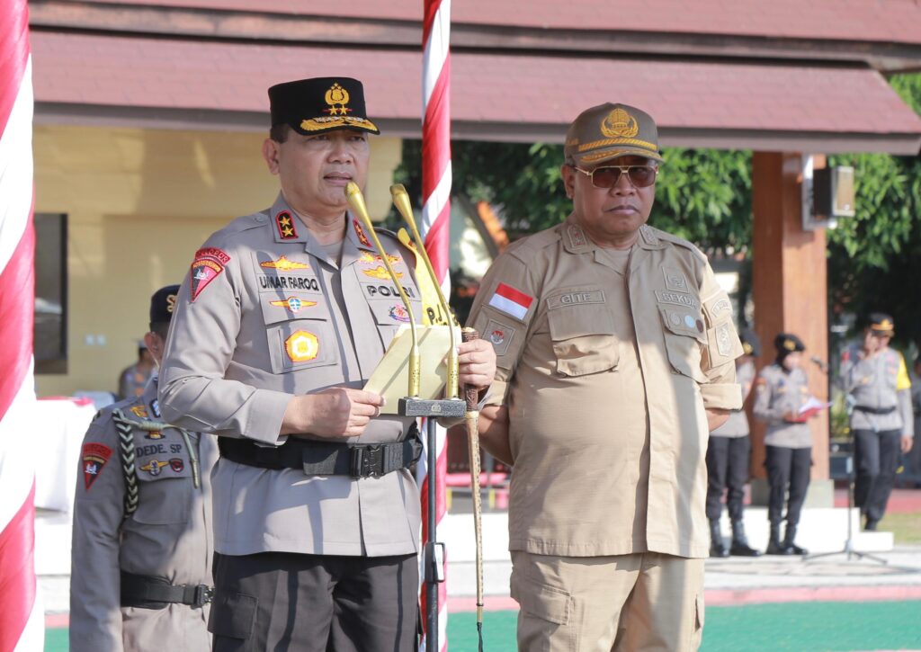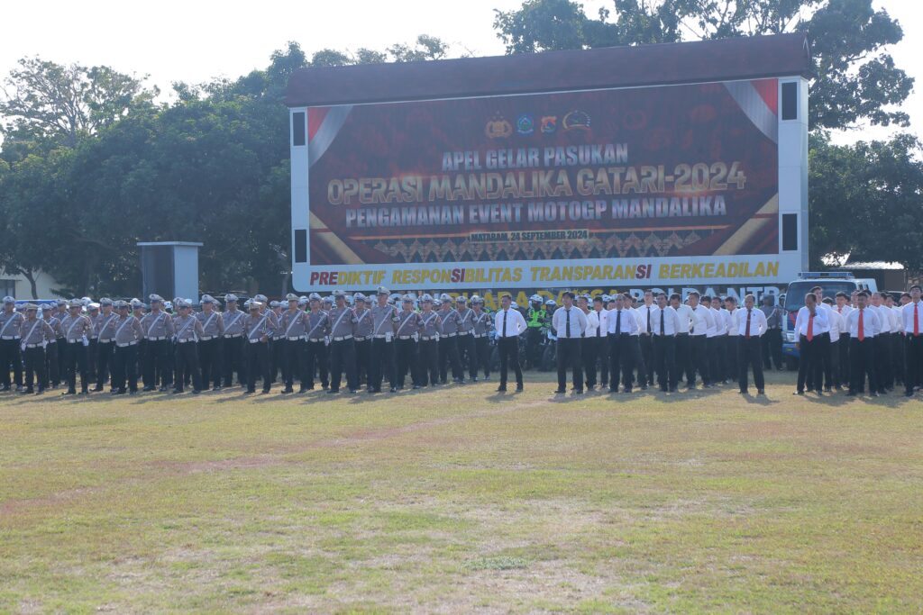 HaluoleoNews.ID, MATARAM – Kapolda NTB Irjen Pol. R. Umar Faruq SH., M.Hum., memimpin Apel gelar pasukan Operasi Mandalika Gatari 2024 dalam rangka Pengamanan Event MotoGP Mandalika, Selasa (24/09/2024).
