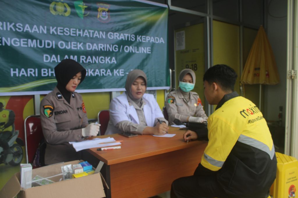 HaluoleoNews.ID, KENDARI- Dalam rangka memperingati Hari Bhayangkara ke-79, Bidang Kedokteran dan Kesehatan (Bid Dokkes) Polda Sulawesi Tenggara (Sultra) melaksanakan kegiatan pemeriksaan kesehatan (Pemkes) gratis yang ditujukan bagi para pengemudi ojek online.