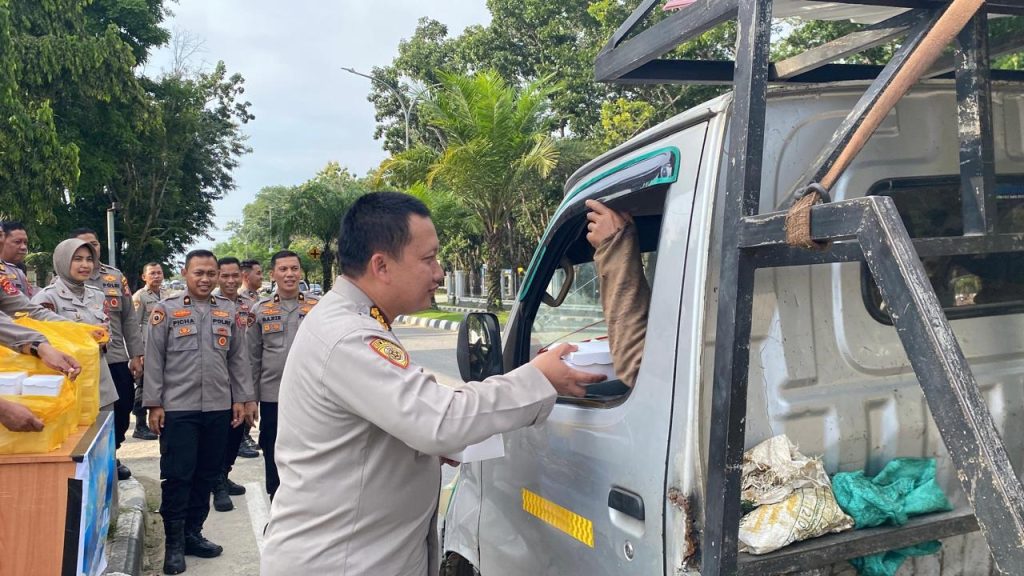 Sebanyak 250 paket takjil dibagikan kepada jamaah Masjid Al Amin Polda Sultra serta masyarakat pengguna jalan raya yang melintas di depan Mako Polda Sultra menjelang waktu berbuka puasa. Pembagian dilakukan secara tertib dan humanis dengan melibatkan personel Biro SDM Polda Sultra.
