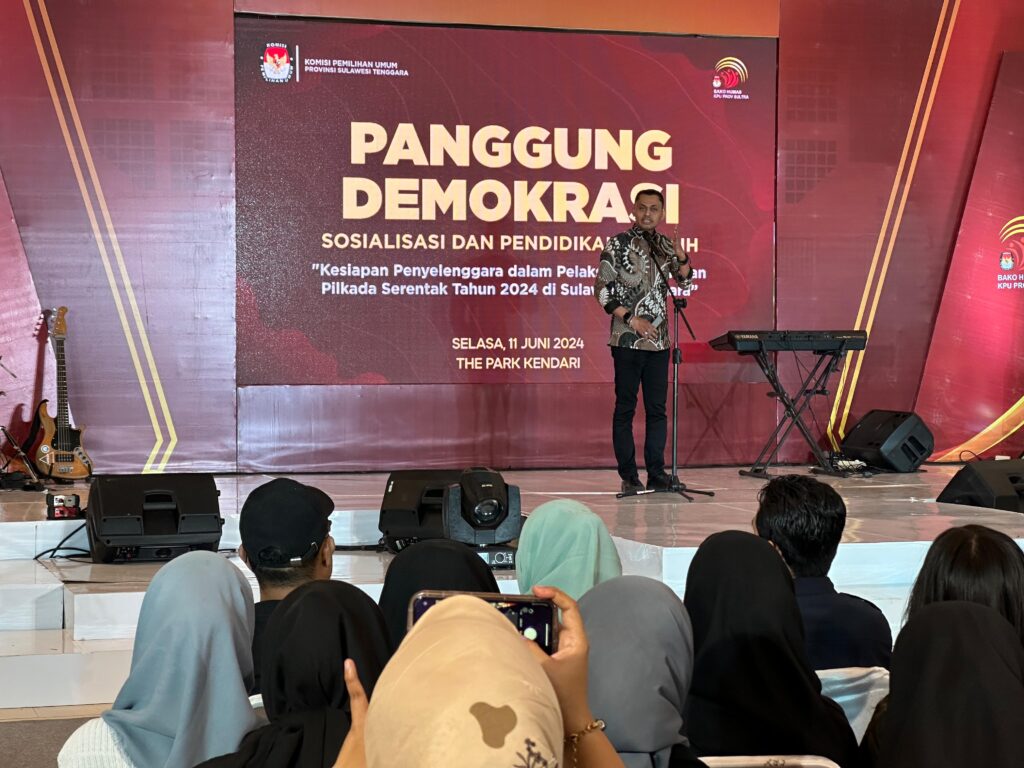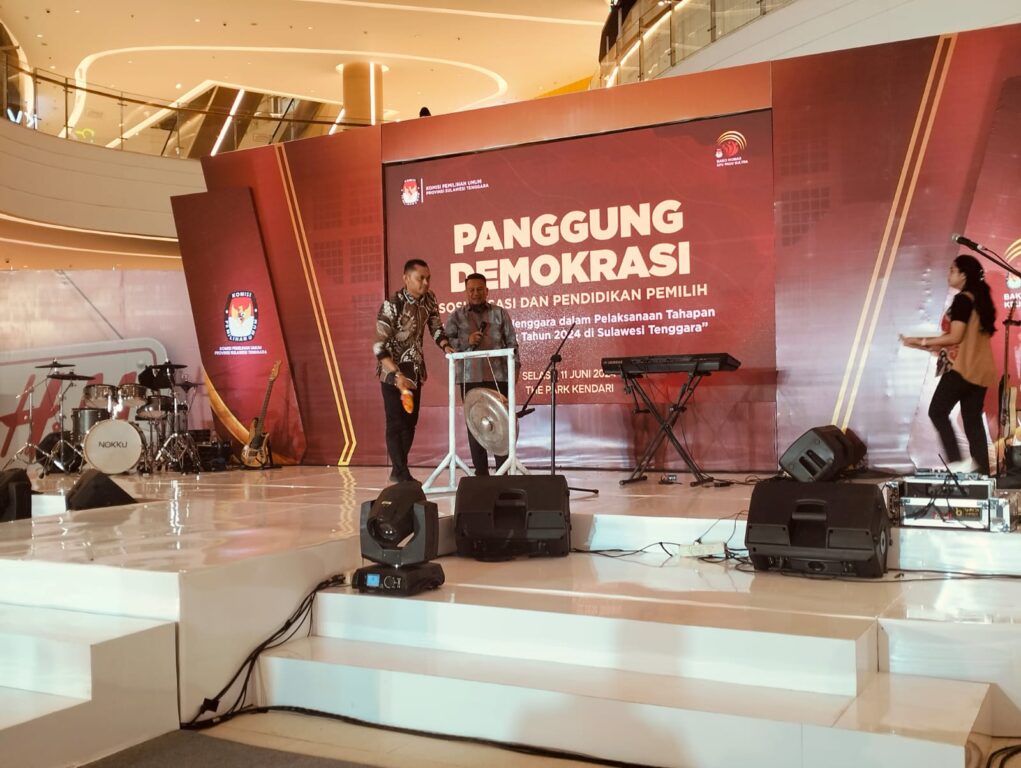 HaluoleoNews.ID, KENDARI– Komisi Pemiliha Umum (KPU) Provinsi Sulawesi Tenggara (Sultra) meluncurkan program bartajuk “Panggung Demokrasi” di The Park Kendari Mall, Selasa (11/6) malam. Turut dihadiri, diantaranya pemilih pemula dari Sekolah Menengah Atas (SMA) sederajat dan perwakilan Perguruan Tinggi (PT) serta masyarakat yang ada di Kota Kendari.