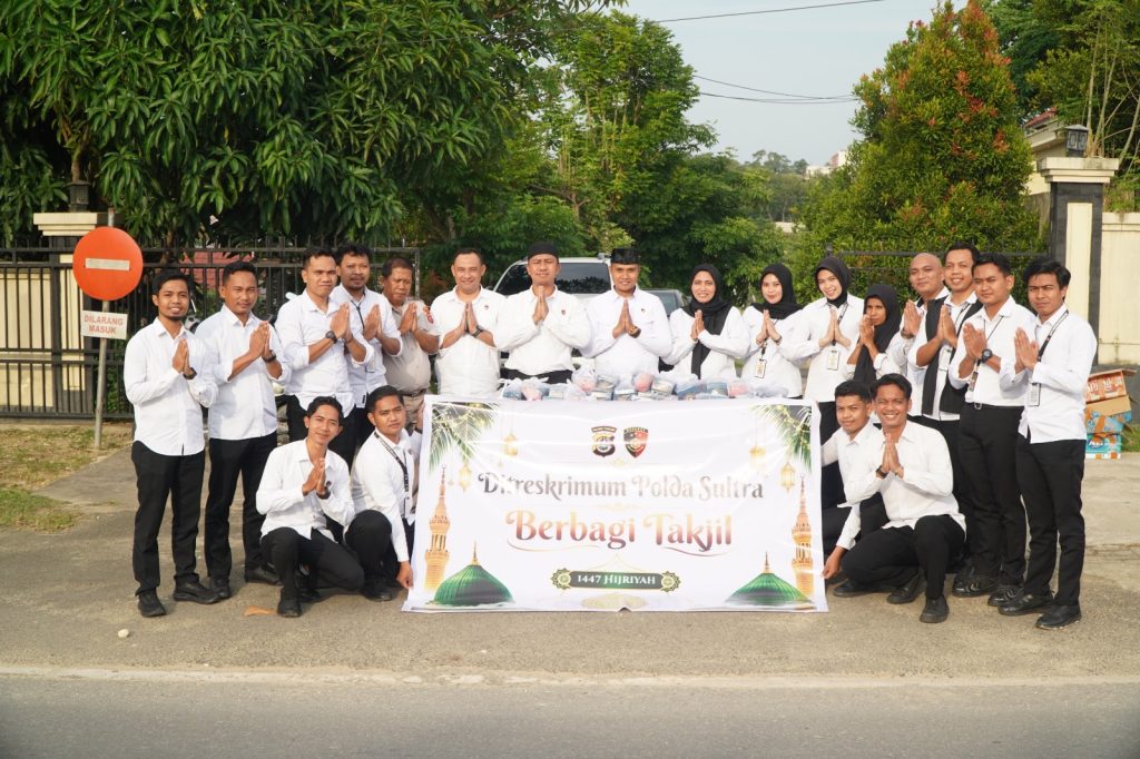HaluOleoNews.ID, KENDARI- Polda Sultra melalui Direktorat Reserse Kriminal Umum (Ditreskrimum) menggelar kegiatan berbagi takjil kepada masyarakat di depan rumah jabatan Kapolda Sultra, pada Senin, 2 Maret 2026.