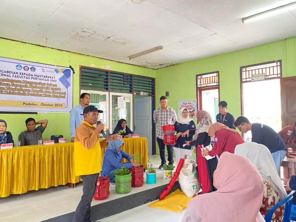 HaluoleoNews.ID, KENDARI- Dosen Fakultas Pertanian (FP) Universitas Halu Oleo (UHO) melaksanakan Program Kemitraan Masyarakat Internal (PKMI) bertajuk “Pendampingan Masyarakat dalam Pengelolaan Sampah Berbasis 3R Guna Mewujudkan Lingkungan Bersih dan Ekonomi Produktif di Kelurahan Padaleu, Kota Kendari”. Kegiatan ini digelar di Kantor Kelurahan Padaleu, Sabtu (4/10/2025).