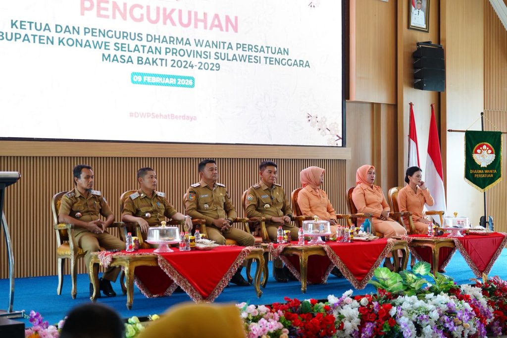 Pengukuhan kepengurusan DWP Kabupaten Konawe Selatan dilakukan oleh Ketua DWP Provinsi Sulawesi Tenggara, Ny. Hj. Waode Munanah Asrun Lio. Dalam prosesi tersebut, Ny. Clementia Corry Ratna Kusuma Ichsan secara resmi dikukuhkan sebagai Ketua DWP Kabupaten Konawe Selatan bersama seluruh jajaran pengurus untuk masa bakti lima tahun ke depan.