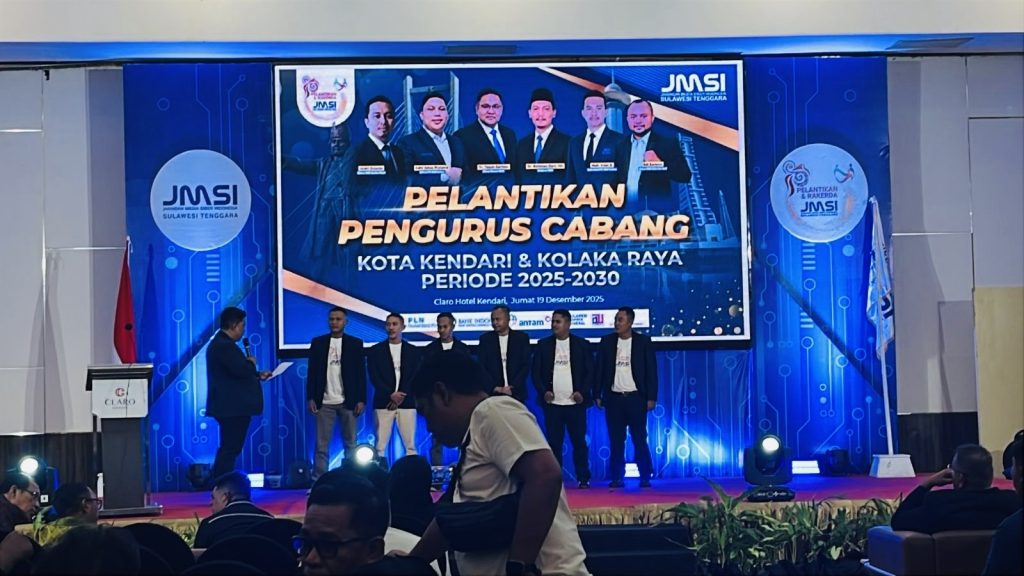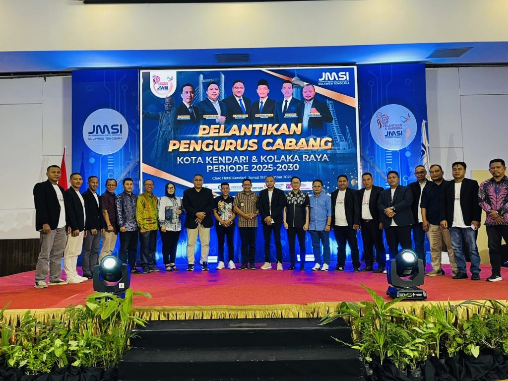HaluOleoNews.ID, KENDARI– Pengurus Jaringan Media Siber Indonesia (JMSI) Kota Kendari periode 2025–2030 resmi dilantik dalam sebuah acara yang berlangsung khidmat di Claro Hotel Kendari, Jumat (19/12/2025).