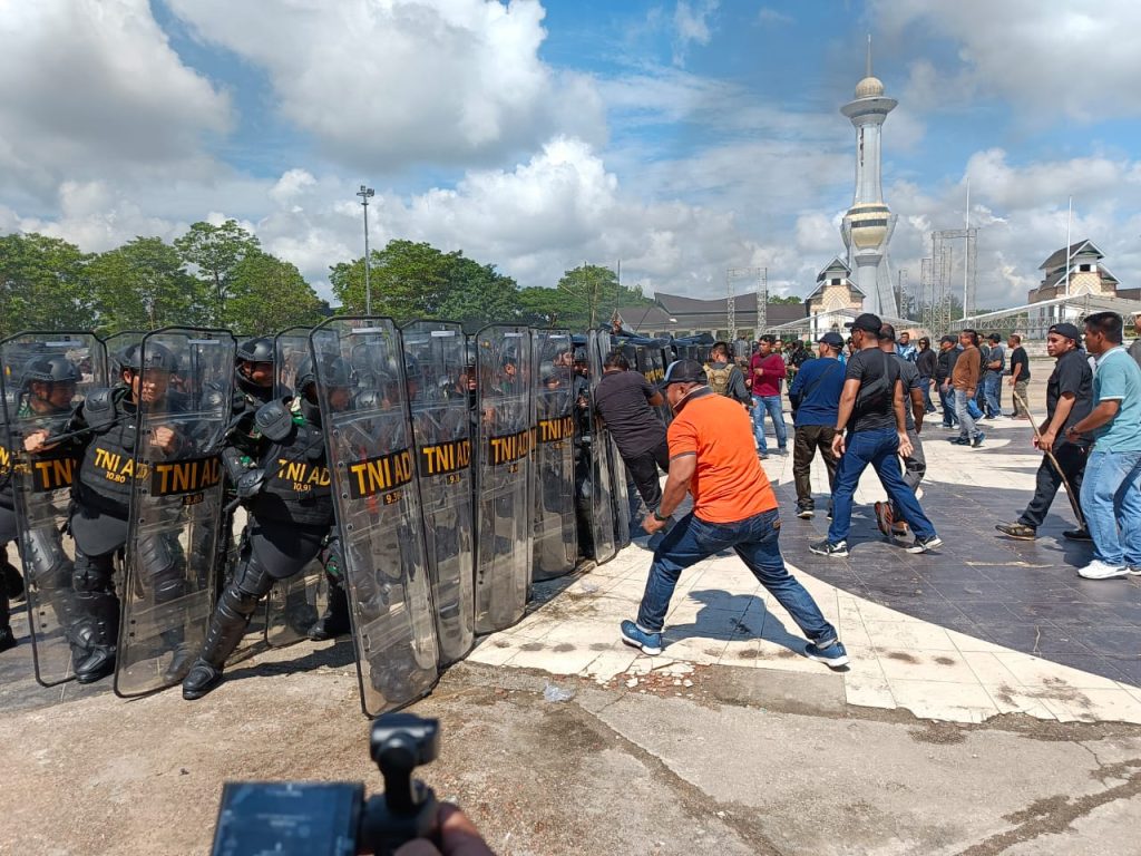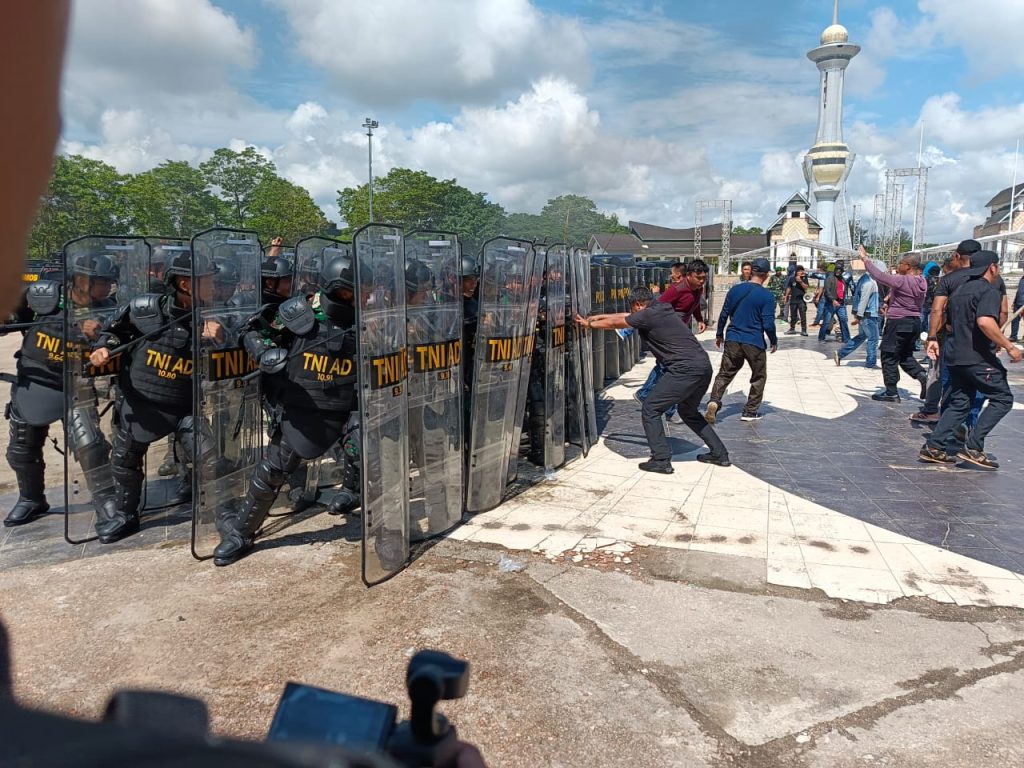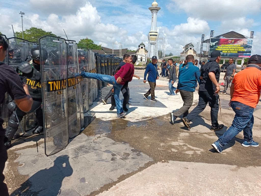 “Bagaimana melatih teknik-teknik dasar penanganan huru hara, melatih teknik negosiasi dalam menghadapi masa dan juga melatihkan teknik penanganan huru hara atau penanganan massa baik secara persuasif maupun massa yang anarkis,” terang Dandim.