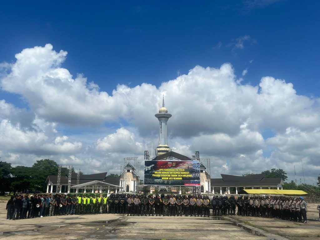 Dalam rangka antisipasi Perkembangan Situasi (Bangsit) Pemilihan Kepala Daerah (Pilkada) Serentak 2024 di Wilayah Kodim 1417/ Kendari. Apel Gabungan TNI Polri dipimpin langsung Komandan Kodim (Dandim) 1417/Kendari, Kolonel Inf Herry Indriyanto SIP.