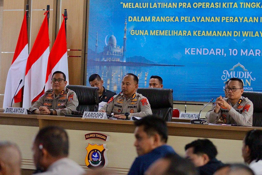 HaluOleoNews.ID, KENDARI- Polda Sulawesi Tenggara (Sultra) menggelar Latihan Pra Operasi (Latpraops) Ketupat Anoa-2026 dalam rangka Pelayanan Perayaan Idul Fitri 1447 H. Kegiatan ini berlangsung di Aula Dhacara Polda Sultra pada Selasa (10/3) mulai pukul 09.00 WITA hingga selesai.