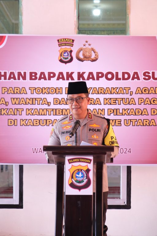 HaluoleoNews.ID, KENDARI – Arahan tersebut diberikan langsung oleh Kapolda Sultra Irjen Pol Dwi Irianto, S.I.K., M.Si kepada tokoh masyarakat, tokoh adat, tokoh agama, tokoh pemuda dan ketua paguyuban dalam rangka harkamtibmas dan Pilkada damai di Kabupaten Konawe Utara, Senin 18 November 2024.