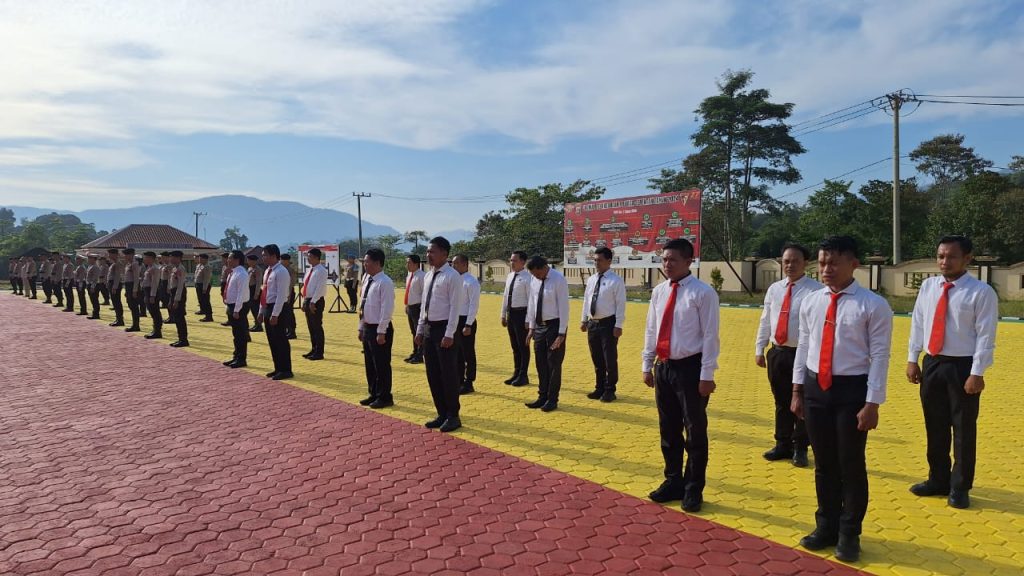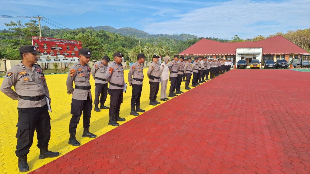 Kapolres konut AKBP Priyo Utomo pada apel siaga kembali mengingatkan personel polres konawe utara untuk tetap menjaga netralitas serta saling sinergi dengan instansi terkait pengamanan debat kandidat.