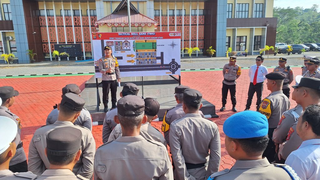 Kabagops AKP Archye Nevadha mengatakan tactical wall game ini sebagai gambaran nyata kondisi lapangan lokasi pengamanan debat paslon pilkada serentak tahun 2024 wilayah polres konawe utara.