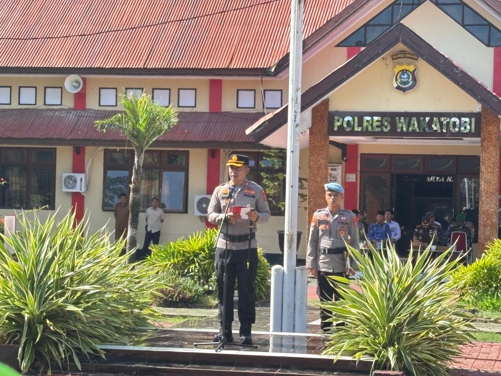 HaluoleoNews.ID, WAKATOBI — Kepala Kepolisian Resor Wakatobi, AKBP I Gusti Putu Adi W., S.I.K., memimpin langsung pelaksanaan Apel Gelar Pasukan Operasi Zebra Anoa 2025 di Lapangan Apel Sarja Arya Racana Polres Wakatobi, Kelurahan Wandoka, Kecamatan Wangi-Wangi, Senin (17/11/2025)