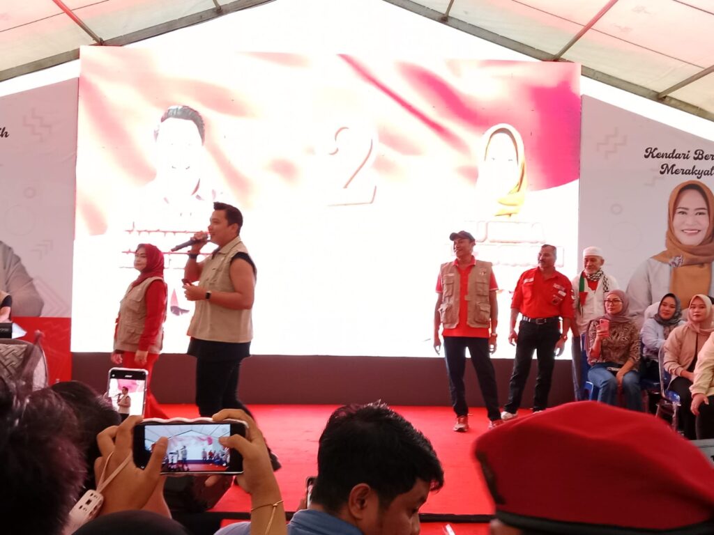 HaluoleoNews.ID, KENDARI- Pasangan calon (Paslon) Wali Kota dan Wakil Wali Kota Kendari Yudhianto Mahardika dan Nirna Lachmuddin lakukan kampanye terbatas di Jalan Brigjen Khatamson Baruga, Kecamatan Baruga, kota Kendari, Selasa (8/10/ 2024).