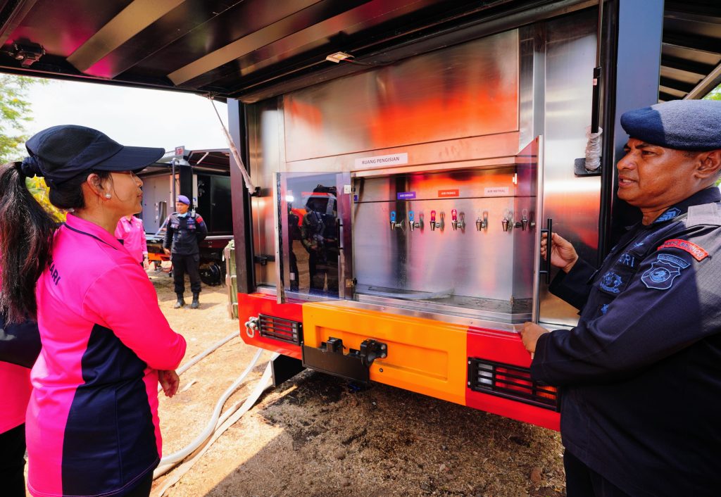 Air bersih sangat dibutuhkan ini disalurkan melalui kendaraan water treatment yang dioperasikan oleh Brimob Polda NTT. Peninjauan tersebut dilakukan untuk memastikan kebutuhan dasar pengungsi, khususnya air bersih, dapat terpenuhi dengan baik.