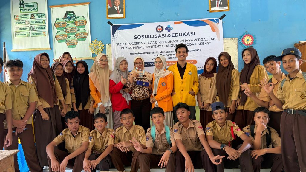 HaluOleoNews.ID, SOROPIA — Mahasiswa Magister Farmasi Universitas Halu Oleo menggelar kegiatan sosialisasi dan edukasi kesehatan remaja di SMP Negeri 2 Soropia, Desa Waworaha, Kecamatan Soropia, Kabupaten Konawe, Sulawesi Tenggara, pada Sabtu (18/4/2026).