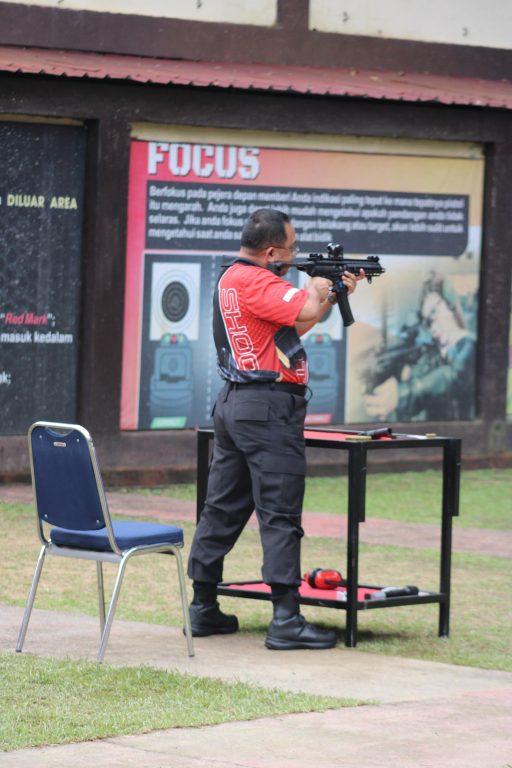 Dalam suasana santai namun tetap kompetitif, para pejabat lintas instansi saling unjuk kemampuan menembak, menjadikan arena lomba penuh semangat soliditas dan solidaritas.