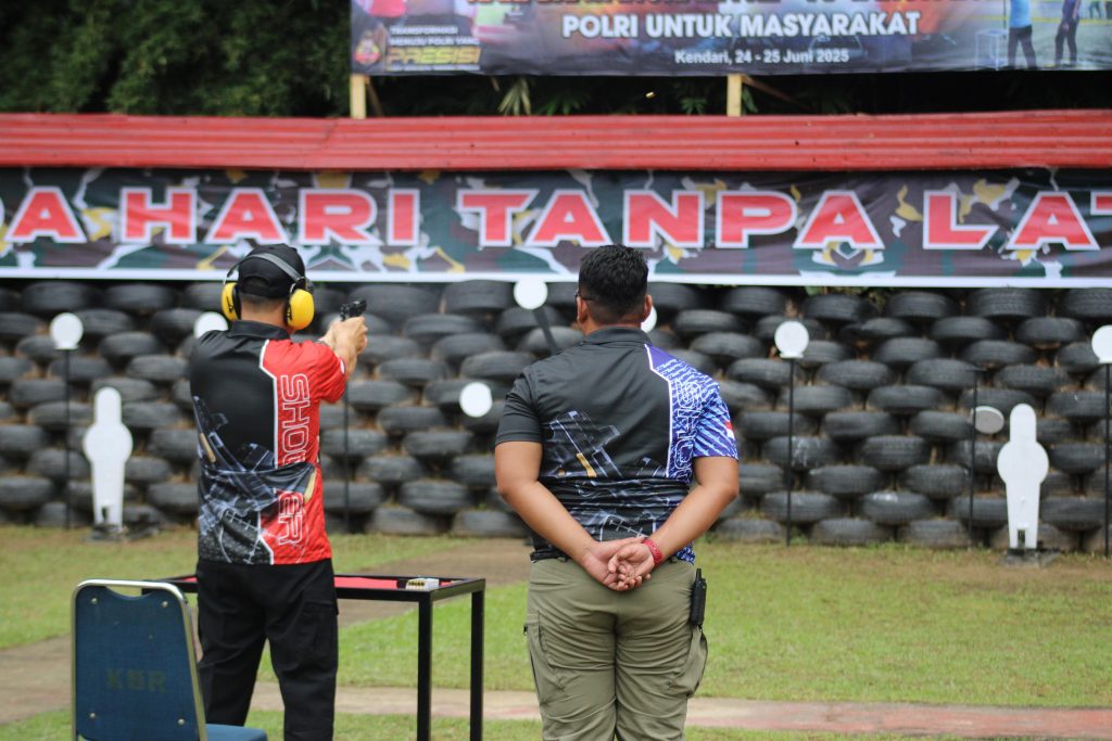 HaluoleoNews.ID, KENDARI – Dalam rangka memperingati Hari Bhayangkara ke-79, Kepolisian Daerah Sulawesi Tenggara menggelar lomba menembak bertajuk fun game yang melibatkan unsur Forum Koordinasi Pimpinan Daerah (Forkopimda) Sulawesi Tenggara, pada Rabu, 25 Juni 2025, bertempat di Lapangan Tembak Ade Yahya Sat Brimob Polda Sultra.