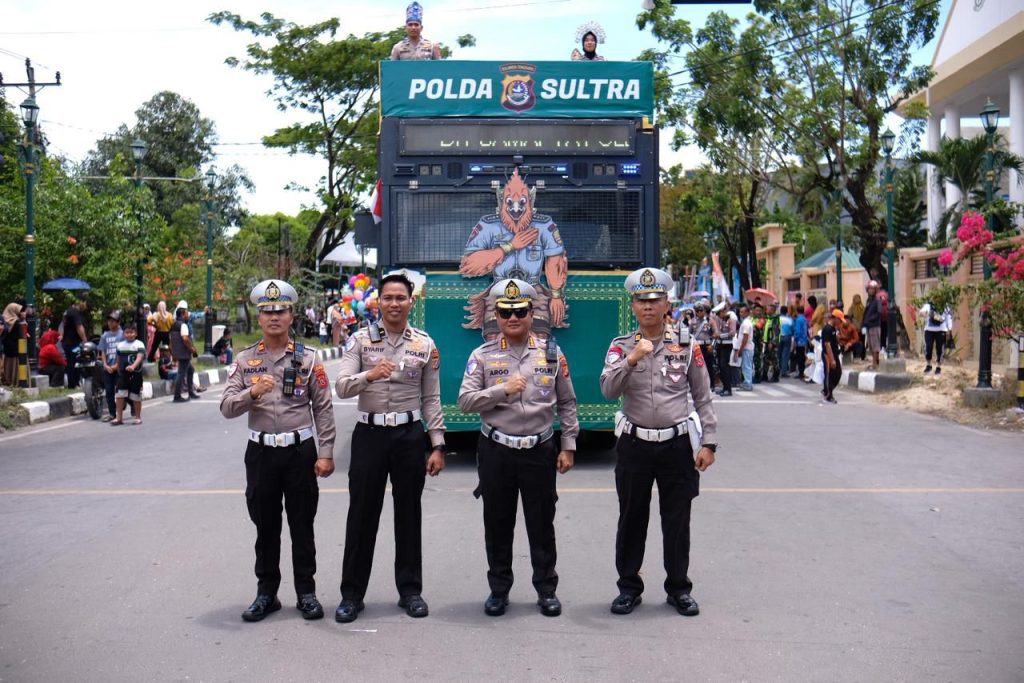Direktur Lalu Lintas Polda Sultra, Kombes Pol. Dr. Argo Wiyono, S.H., S.I.K., M.Si., menyampaikan bahwa jajaran kepolisian telah melakukan monitoring, pengamanan, dan koordinasi bersama Dinas Perhubungan untuk memastikan kelancaran arus lalu lintas serta keamanan selama kegiatan berlangsung. Seluruh rangkaian pawai berjalan aman, tertib, dan kondusif.