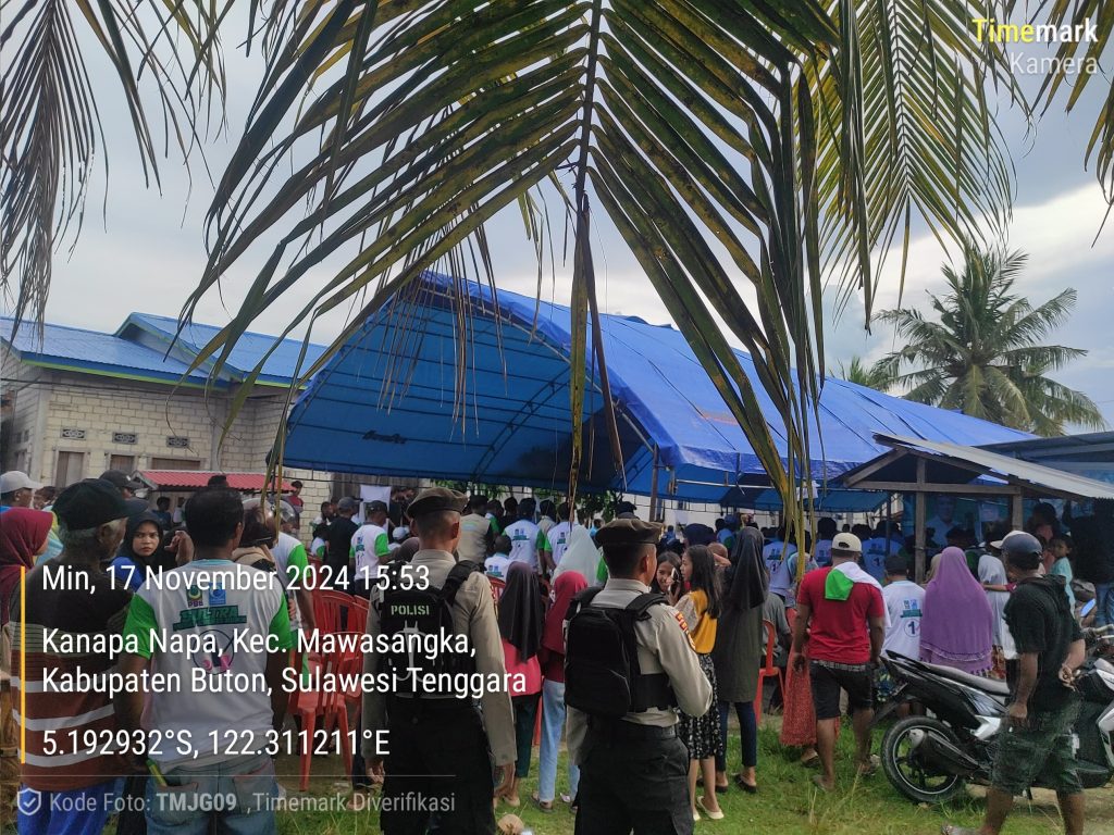 HaluoleoNews.ID, BUTENG – Subsatgas Pam Objek Kegiatan Zona C melaksanakan pengamanan kampanye pasangan calon Gubernur dan Wakil Gubernur Sulawesi Tenggara. Kegiatan ini berlangsung di Desa Terapung, Kecamatan Mawasangka, Kabupaten Buton Tengah, pada Minggu (17/11) pukul 16.00 WITA.