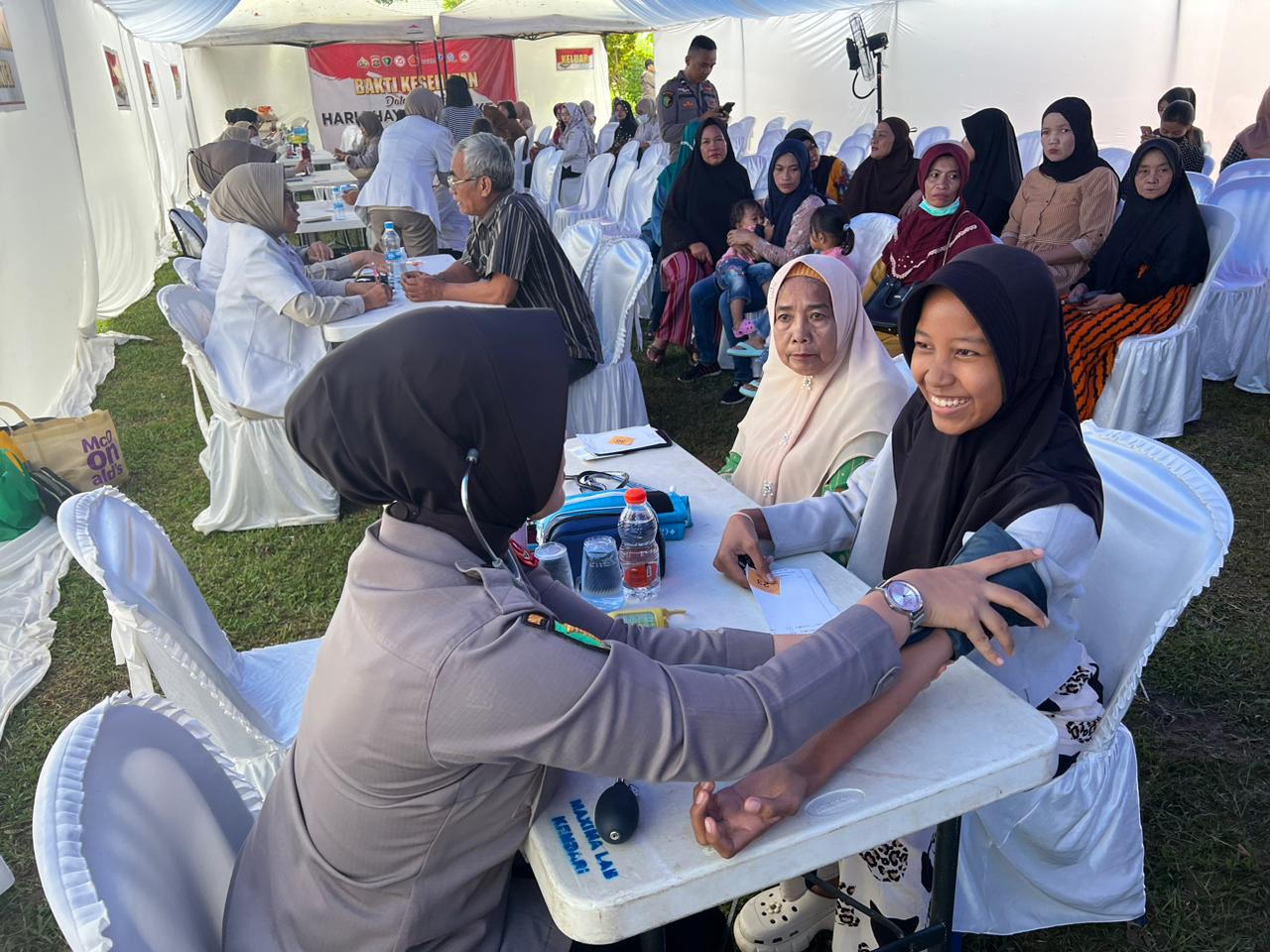 Bakti kesehatan ini mengusung tema “Polri Presisi Mendukung Percepatan Transformasi Ekonomi yang Inklusif dan Berkelanjutan Menuju Indonesia Emas”. Layanan yang disediakan meliputi pelayanan umum dan gigi, khitanan massal, penanganan stunting, pelayanan KB, donor darah, operasi katarak, serta pelayanan dan pemberian alat bantu bagi penyandang disabilitas.