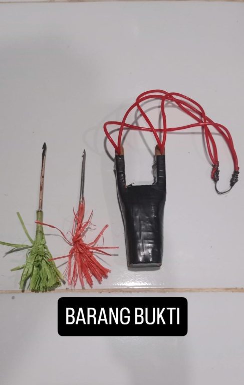 Kasat Reskrim Polresta Kendari AKP Welliwanto Malau, S.I.K., M.H. menjelaskan bahwa penangkapan dilakukan setelah petugas menemukan barang bukti berupa satu ketapel atau pelontar kayu berwarna hitam dengan tali merah serta dua mata busur yang terbuat dari besi payung yang telah dimodifikasi.