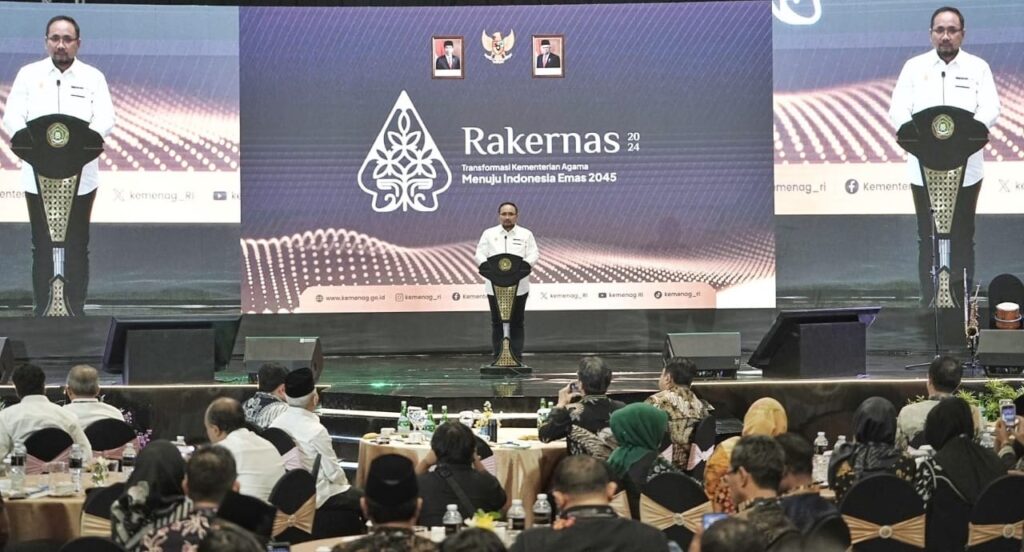Pesan ini disampaikan Gus Men, panggilan akrabnya, saat membuka Rapat Kerja Nasional (Rakernas) Kementerian Agama 2024. Berlangsung di Semarang, Rakernas mengusung tema “Transformasi Kementerian Agama menuju Indonesia Emas 2045”.