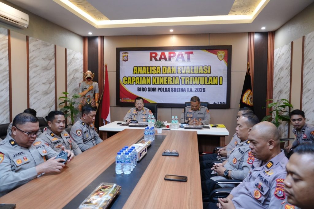 HaluOleoNews.ID, KENDARI – Pelaksanaan Kegiatan Rapat Analisa dan Evaluasi Capaian Kinerja Triwulan I Tahun Anggaran 2026 Biro SDM Polda Sultra yang dipimpin langsung oleh Karo SDM Polda Sultra Kombes Pol Dr. Arief Fitrianto, S.H., S.I.K., M.M. dan diikuti oleh Para Kabag dan Kasubbag serta Seluruh Personel dilingkungan Biro SDM Polda Sultra.