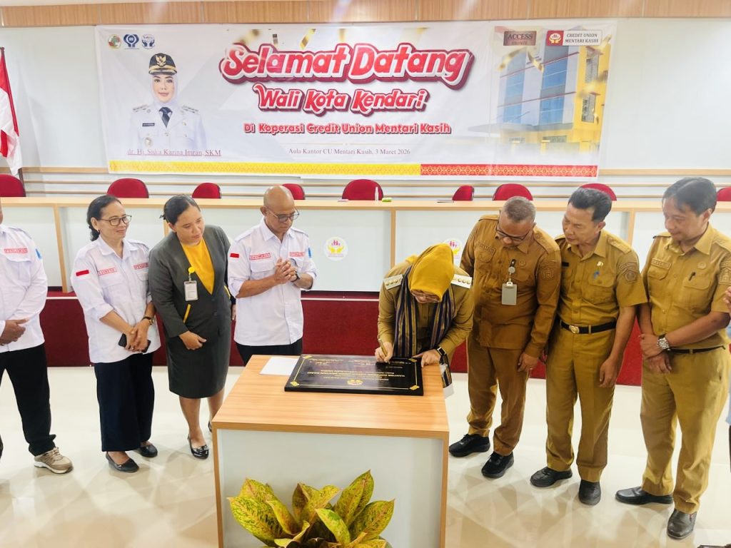 HaluOleoNews.ID, KENDARI – Wali Kota Kendari, Siska Karina Imran didampingi Kepala Badan Pendapatan Daerah (Bapenda) Kota Kendari beserta jajaran, mengunjungi sekaligus menandatangani prasasti peresmian gedung baru Koperasi Credit Union (CU) Mentari Kasih yang sempat tertunda. Kegiatan tersebut berlangsung di Aula Kantor CU Mentari Kasih, Selasa (3/2/2026).