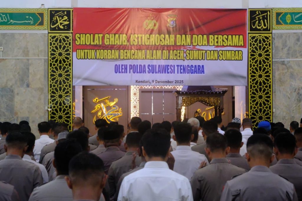 HaluoleoNews.ID, KENDARI – Kepolisian Daerah (Polda) Sulawesi Tenggara (Sultra) menunjukkan solidaritas dan dukungan spiritual yang mendalam terhadap korban bencana alam di Aceh, Sumatera Utara (Sumut), dan Sumatera Barat (Sumbar) dengan menggelar kegiatan doa bersama lintas agama pada Senin, 1 Desember 2025.